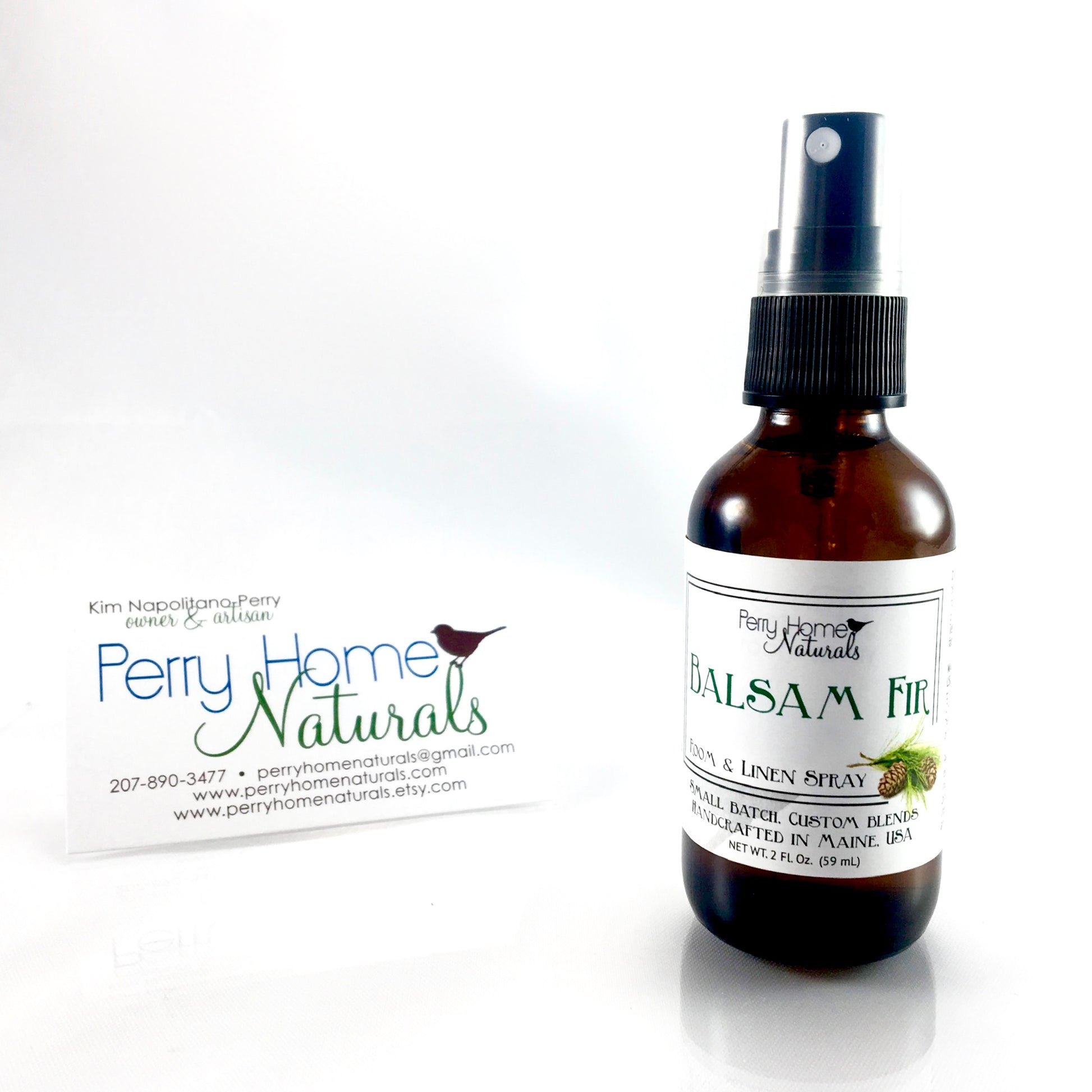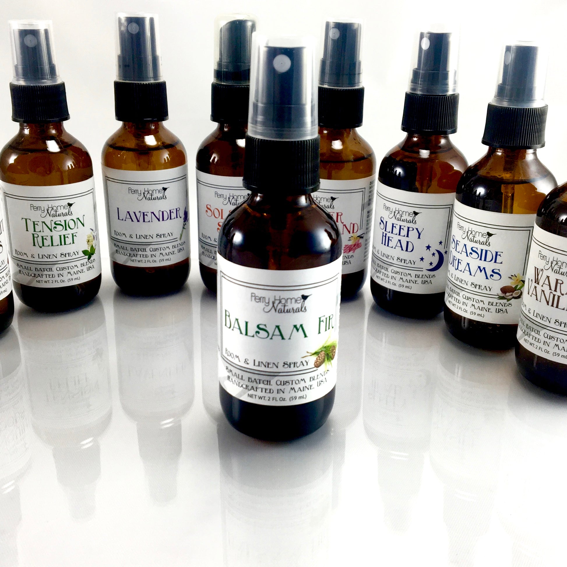 Packaged in amber glass bottles with a fine mist sprayer. Handmade with care in Maine.