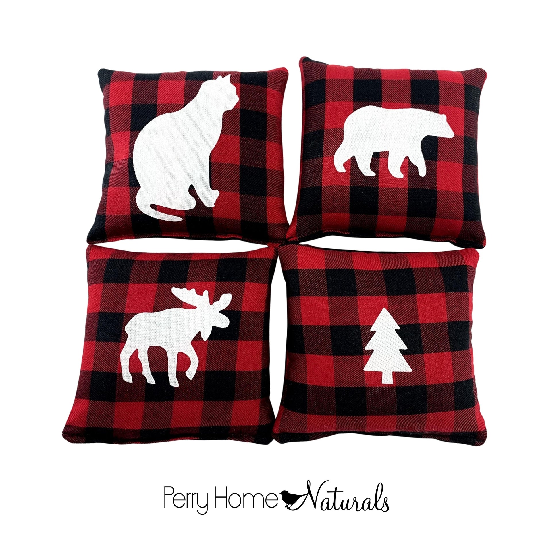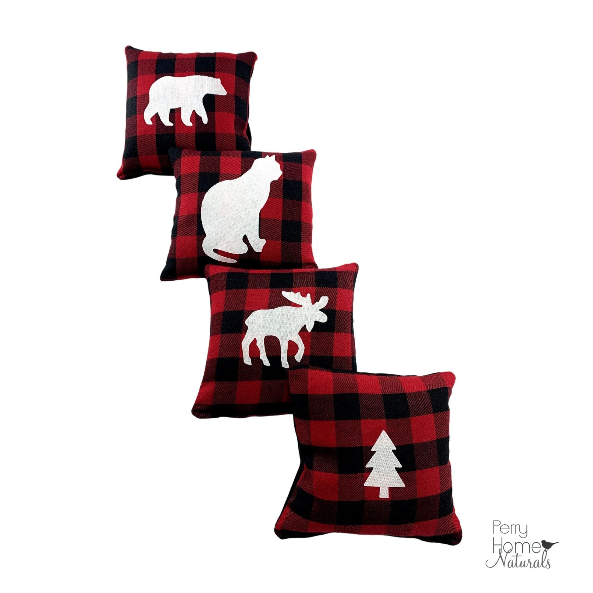 Handmade in Maine, these buffalo plaid sachets add long-lasting natural scent and a clean, modern woodland look to small spaces.