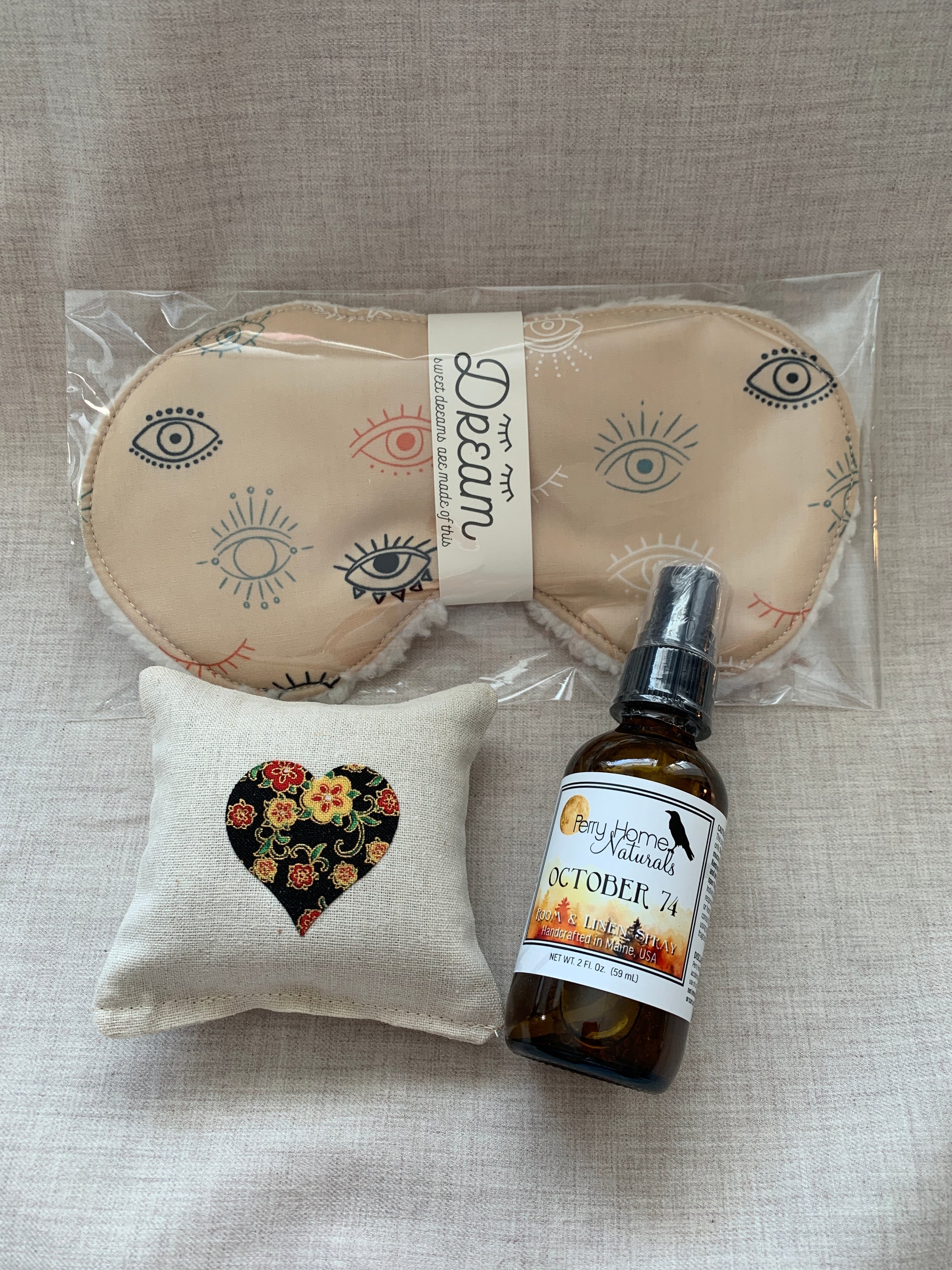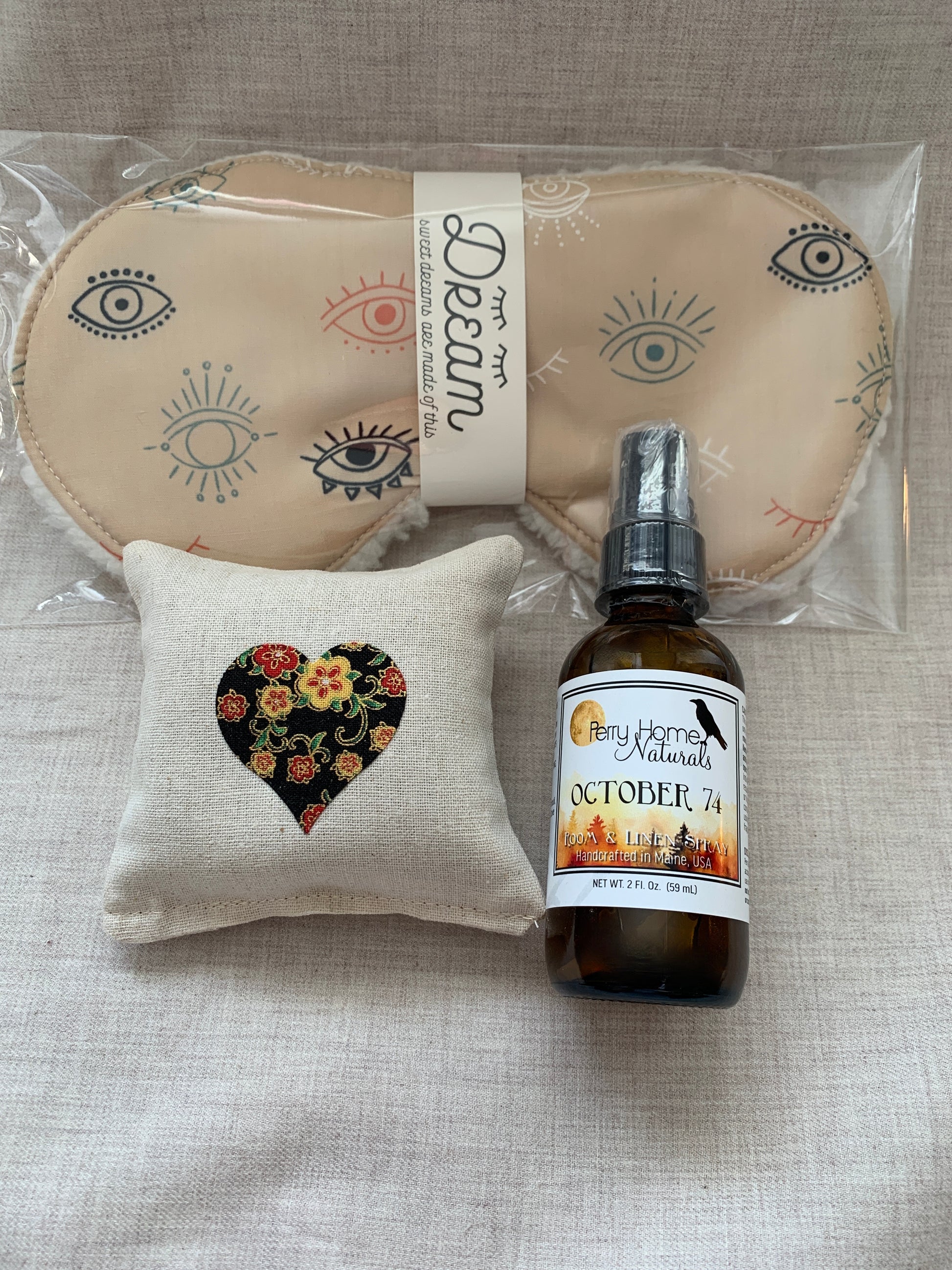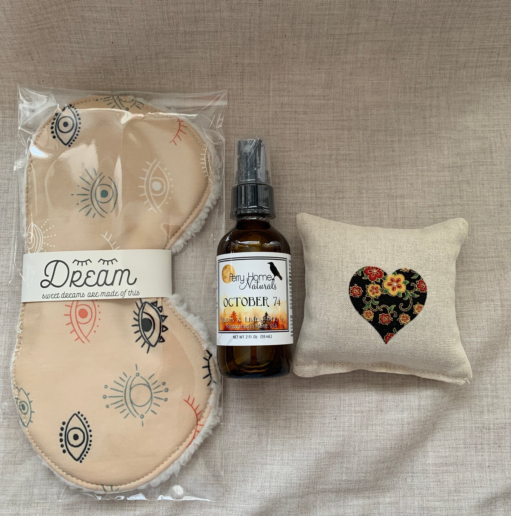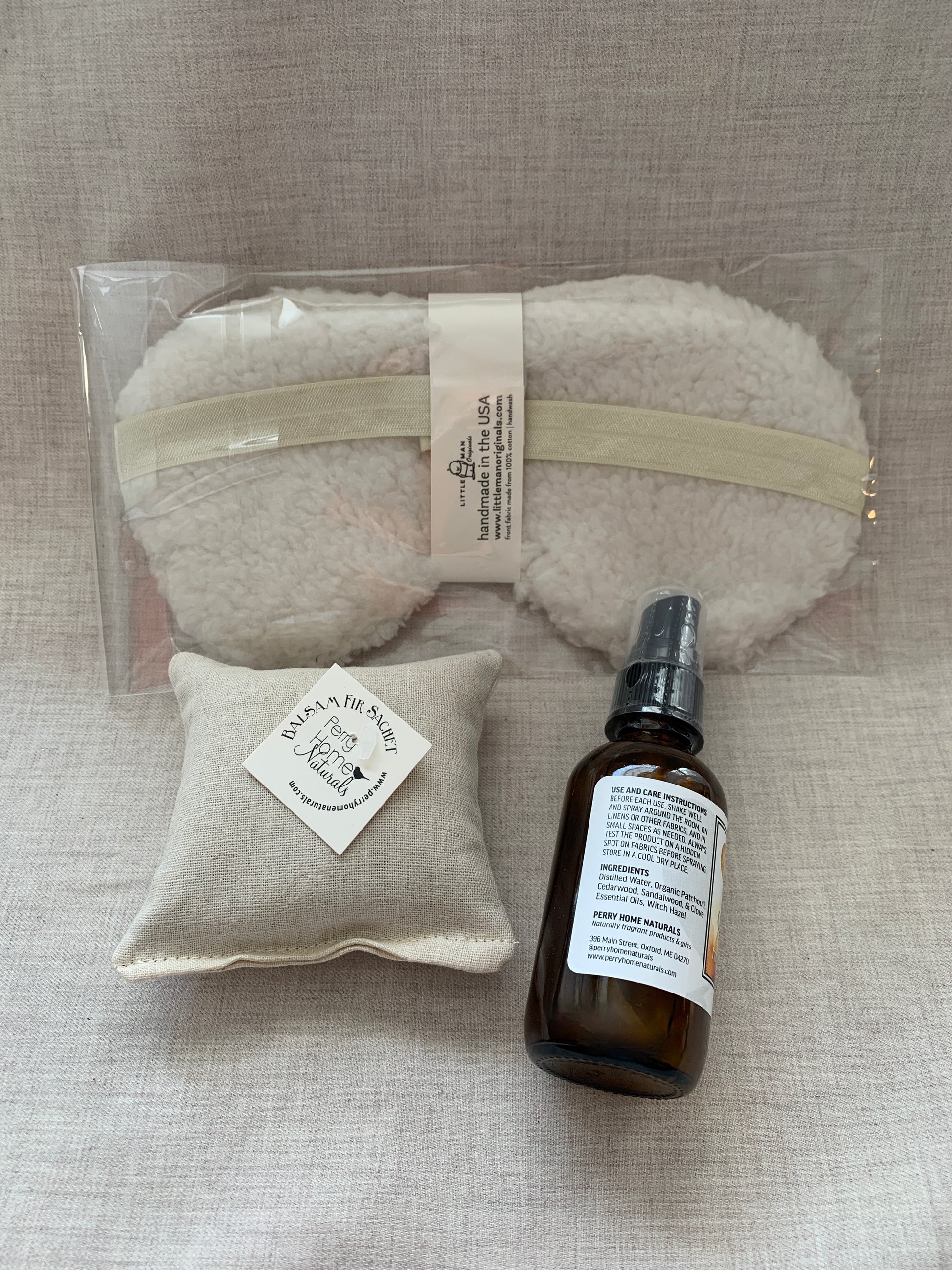The sachet and spray are handmade in small batches by Perry Home Naturals and included exactly as shown.